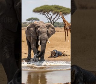 Giraffe And Elephant Work Together To Save Lion Cub! #rescue #animals #wildlife