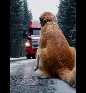 On a cold, silent road at dusk, a Golden Retriever suddenly stepped in front of a moving car — refusing to move. Her eyes were wide, desperate, and filled with fear. The driver slammed the brakes, shocked that a dog would risk her life like that.