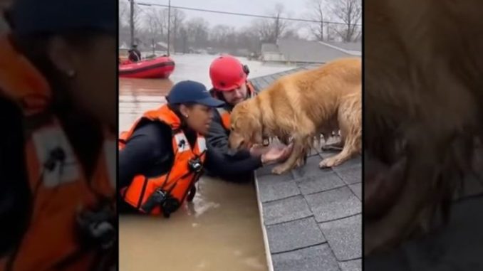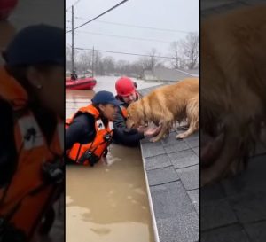 People watching from higher ground held their breath. The image of the golden dog standing bravely in the brown, churning water was heartbreaking a symbol of both loyalty and desperation.