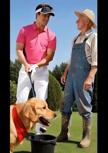 The soaked golfer stormed away in embarrassment, while the old worker gently patted the dog’s head in gratitude. No words were needed.