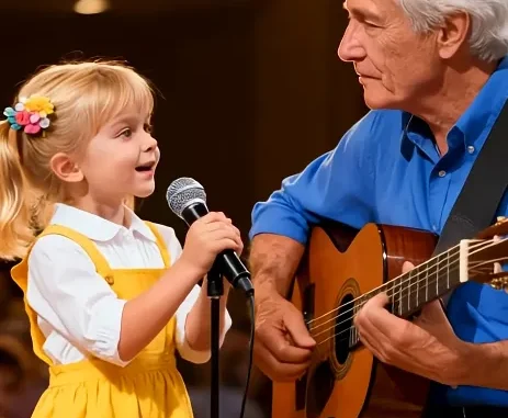 When the pair stepped onto the softly lit stage, there was a hush in the crowd. The young girl, no older than ten, clutched the microphone with both hands, her eyes filled with excitement and affection as she looked up at her grandfather beside her. The man, silver-haired and dignified, wore a quiet smile, the kind that only comes from decades of life experience and tender pride. Their appearance together was already moving—but what followed transcended the boundaries of mere performance.