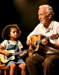 Then his granddaughter joined in, her voice light and pure, like a breeze that wrapped itself around his melody. The blend of their voices was magical — his deep and weathered, hers soft and hopeful. It was as though two generations had met in song, one carrying the echoes of the past, the other breathing new life into it.