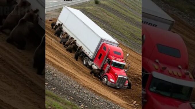 Just when it seemed there was no hope, movement came from the forest. Out of the trees emerged a group of grizzly bears, their massive figures casting both awe and fear. At first, the driver was frozen was this another danger on top of the one he already faced? But what happened next left him speechless.