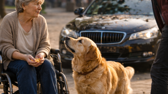 The golden retriever stood up and positioned itself beside her wheelchair. Calm. Focused. Alert. It didn’t bark. It didn’t lunge. It simply locked eyes with the young man. The message was clear: you crossed a line.