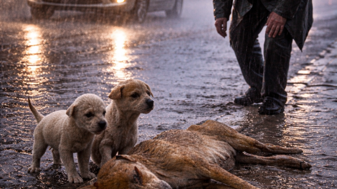 The puppies grew louder, their small bodies shaking from cold and fear. They didn’t understand what was happening. All they knew was that the only thing they had — their protector — was fading away.