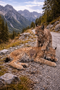 The injured lynx tried to stand. Its legs trembled, but it didn’t give up. The second lynx stepped closer, offering silent strength.
