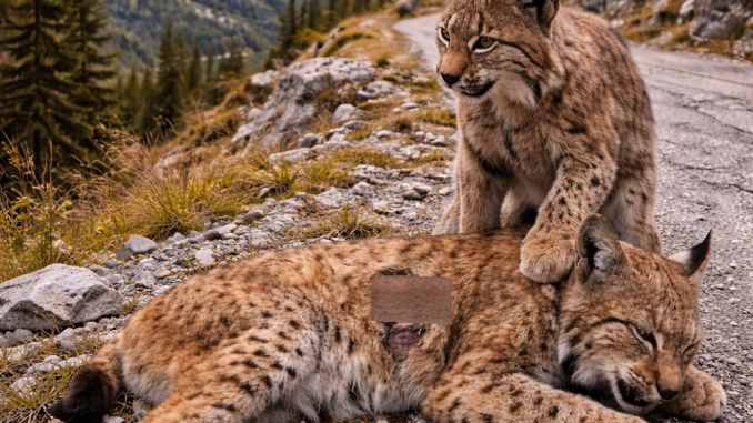 The injured lynx tried to stand. Its legs trembled, but it didn’t give up. The second lynx stepped closer, offering silent strength.