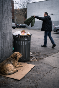 Gray walls, cracked pavement, and the kind of silence that only empty parking lots understand. A middle-aged man stood near a public trash can, holding a green winter jacket. Without much thought, he tossed it inside and walked away.