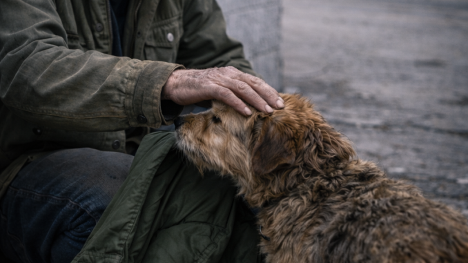 He picked up the jacket slowly, touched by something simple and unexpected. He reached out and gently petted the dog’s head.