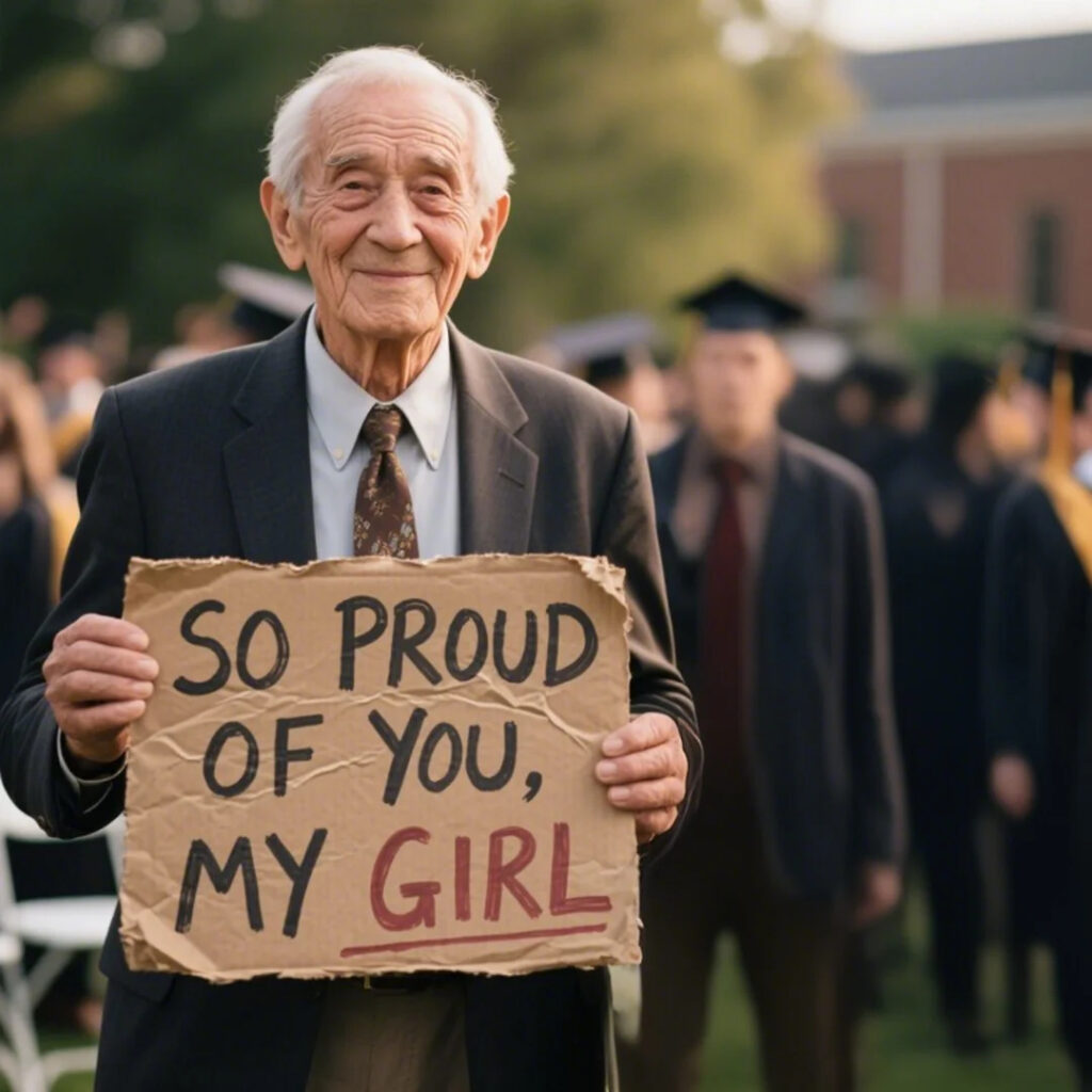 Everyone was shouting, laughing, taking selfies. And there he was—standing off to the side with a wrinkled hand-painted sign that said: