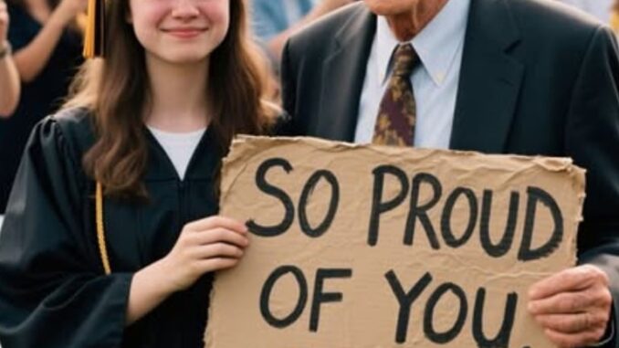Everyone was shouting, laughing, taking selfies. And there he was—standing off to the side with a wrinkled hand-painted sign that said: