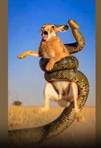 Deep in the grasslands, an unexpected battle for life unfolds. A small rabbit, frozen in fear, becomes the target of a fast-striking snake. The predator coils, ready to take its chance — but something incredible happens.