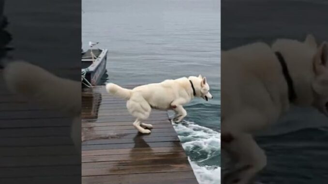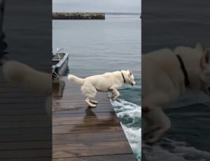 When no one paid attention, Max did something unthinkable — he jumped straight into the water, swimming toward the boats. His powerful strokes cut through the waves, heading directly toward a small fishing vessel just leaving the dock.