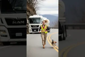 They sprinted away from the massive truck, the air thick with tension. Just as they rounded a bend, a deafening blast ripped through the quiet landscape, confirming the imminent danger they had just escaped. Safe but shaken, the driver hugged her furry hero, overwhelmed with gratitude for the dog’s incredible intuition and the unbreakable bond that had just saved her life.