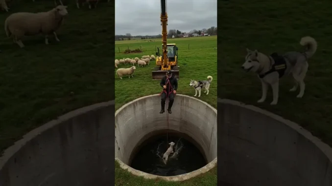 This is the incredible story of a loyal husky that alerted its owner to a lamb trapped in a deep well, sparking a daring rescue.