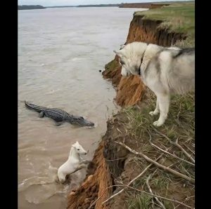 A breathtaking rescue video has captured the hearts of millions — showing the moment a courageous man and his loyal Husky race against time to save a helpless foal from a lurking crocodile.