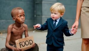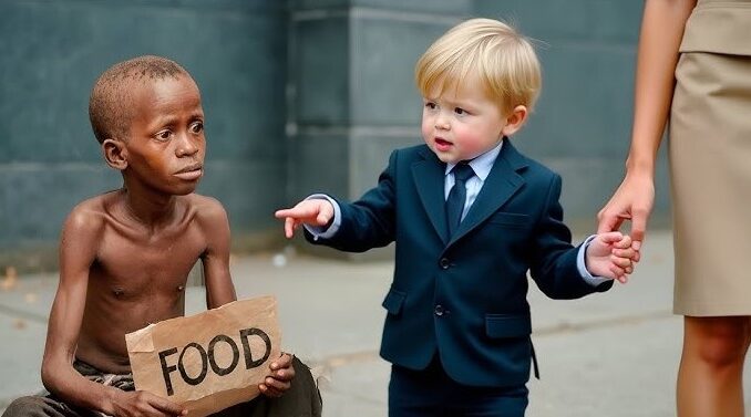 As they turned the corner onto 6th Avenue, Andrew suddenly stopped dead in his tracks. His small hand tightened around Clara’s. “Andrew?” she asked, half-distracted, expecting a plea for ice cream or a complaint about tired feet. But Andrew didn’t answer. His wide eyes were fixed on a figure crouched near a trash bin—a boy, perhaps eight years old, barefoot and shirtless, clutching a battered cardboard sign that read simply, “Food!”
