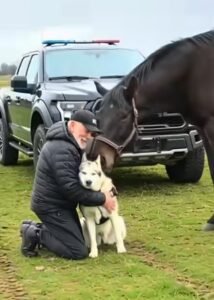After the dramatic rescue, an emotional moment followed. The officer hugged the husky tightly as the horse nuzzled the brave dog, almost as if saying thank you. The scene captured the essence of loyalty and the incredible bond between animals and humans.