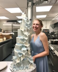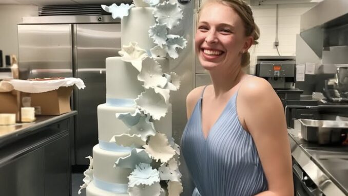 The morning of the wedding, I stood in the venue’s kitchen, carefully piping the final details onto the cake. Laughter spilled in from the grand hall as guests arrived, filling the space with energy.