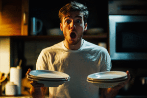 A man holding plates | Source: Midjourney