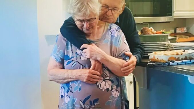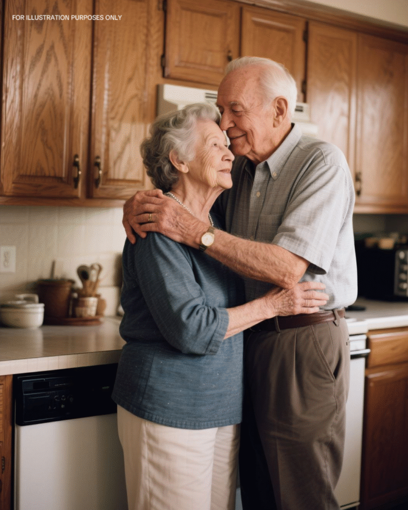 There they were—Grandma and Grandpa—standing by the counter, completely lost in each other. Grandpa had his arms around her, his chin resting gently on her shoulder, and she just leaned into him, as natural as breathing.