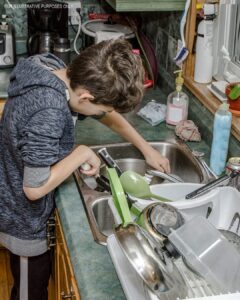 Next, he loaded the dishwasher with ease, wiped down the counters, and neatly stacked our shoes by the door.