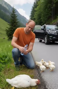 This encounter serves as a powerful reminder of the importance of being mindful of wildlife, especially when traveling through natural areas. The man’s actions were not only a life-saving gesture but also an inspiration, showing that small acts of kindness can make a significant difference. The hen and her chicks were able to safely continue their journey, thanks to this compassionate human intervention.