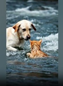 Still dripping, still shaking, the Labrador carried the kitten to a nearby house by the river—the kitten’s home. At the door, he waited.