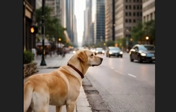 In the middle of a busy city street, surrounded by tall buildings and moving cars, a Labrador retriever suddenly stepped into the road. Traffic slowed. Drivers hesitated. The dog stood firm, refusing to move.