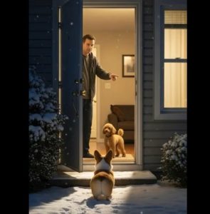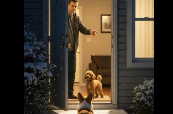 On a freezing winter night, as thick snow blanketed the neighborhood, a small corgi stood helplessly outside the door of the home he once trusted. Trembling from the cold, he pressed his paws gently against the window, hoping for mercy—hoping for a chance to come back inside. But the door never opened.