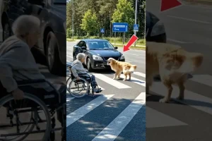 In a touching display of animal intelligence and compassion, a Golden Retriever stepped in to assist an elderly woman. The woman, seated in a wheelchair, was preparing to cross a busy road, and the dog seemed to understand the need for help.