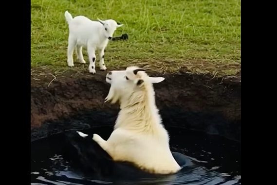 The mother goat slipped near an old, hidden oil pit. In an instant, she fell in, struggling desperately to keep her head above the thick, sticky surface. Panic filled the air as the baby goat ran along the edge, crying out loudly for her mother. She was too small, too weak to help — fear and helplessness overwhelmed her tiny heart.