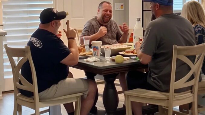 Kyle walked in, laughing with his friends. He was balancing two twelve-packs and three pizza boxes. Behind him were Chris, Josh and Dev. Kyle’s game-night crew. They called out greetings, already halfway to the couch.