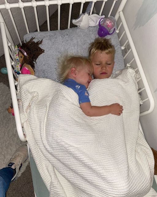 Of course, my first instinct was to pick them up and put them back in their beds. But as I watched them sleep there, so content, it felt wrong to disturb them. I wondered how long they had been like this, how long they had been sneaking into each other’s spaces at night. Were they afraid? Did they just miss each other? Or was it something else?