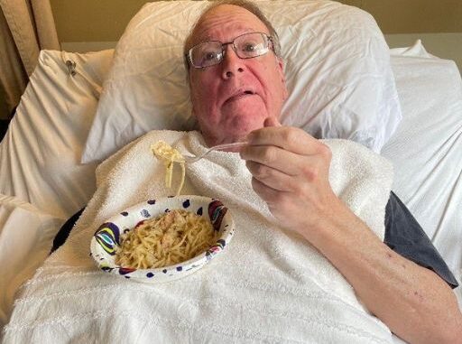 He smiled faintly, his tired eyes softening as he settled back into his pillow. “Good. That’s all. Now, I think I’m done with this casserole.”
