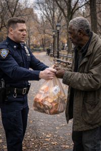 The officer held the bag. Inside were scraps — food long past its dignity.