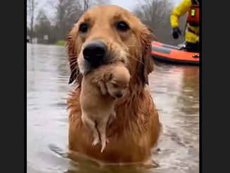 The floodwaters rose quickly, swallowing streets and turning familiar places into dangerous currents. In the middle of it all, a mother Golden Retriever stood in […]