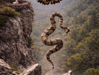 Inside it, a small chick huddled close, soft feathers shaking in the wind. Above it, an adult eagle stood tall, wings slightly spread, watching the […]