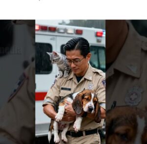 Ethan carefully wrapped both animals in his paramedic jacket, cradling them close to his chest. He could feel their tiny hearts beating fast against his arm. Inside the ambulance, he turned on the heater and gently dried them with a towel from his kit.