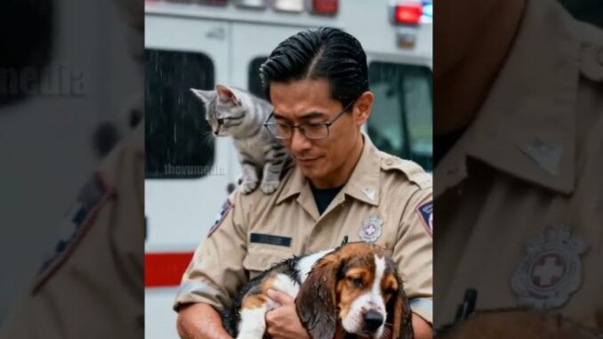 At first, he thought it was just debris. But then he heard it a faint, trembling whimper that barely cut through the roaring rain. Ethan stopped his ambulance, turned on the hazard lights, and stepped out into the storm. The rain soaked him instantly.