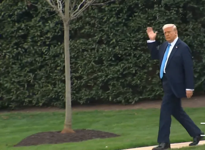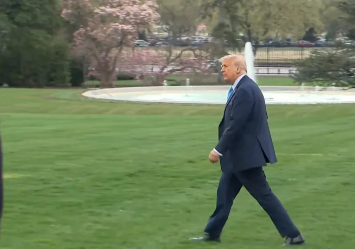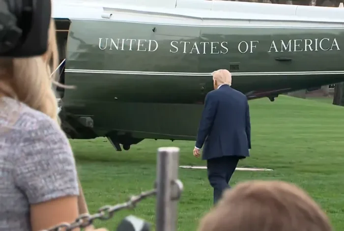 President Donald Trump drew attention on Friday evening as he walked across the South Lawn of the White House to board Marine One, appearing notably slimmer and more energized than in recent months.