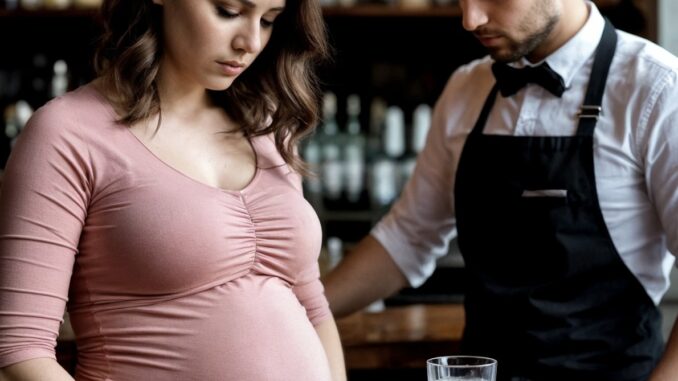 Katya nodded gratefully. While he went away, she took off her coat — it was warm inside. When he returned, the bartender handed her the glass, but suddenly his expression changed sharply. His gaze slid below eye level — to the girl’s belly.
