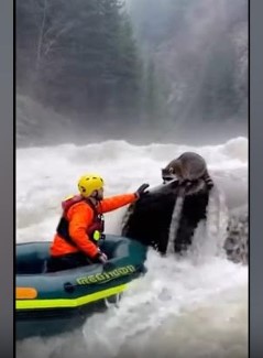 Thanks to the quick response of local rescuers and nearby residents, a challenging rescue operation was organized to bring the raccoon to safety. Despite the strong currents and dangerous conditions, the team carefully approached using safety ropes and specialized equipment.