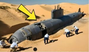 As they approached the location, no one could believe what they saw. A dark metallic silhouette protruded from the sand — weathered, rusted in places, but still commanding. A massive submarine lay under the scorching sun, far from any ocean, as if lost from another reality.