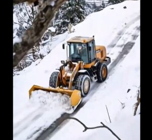 High in the snowy mountains, a snowplow driver was clearing the narrow road like he did every winter day. The wind was howling, the snow was falling endlessly, and visibility was low — just another tough shift in harsh weather.