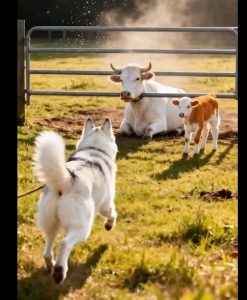 Nearby, a service dog noticed the cow’s struggle. With alert eyes and focused movements, the dog understood the gravity of the situation. It immediately ran to its owner, barking and pulling, signaling that urgent help was needed. The dog’s intelligence and awareness turned it into the perfect first responder in this tense scenario.