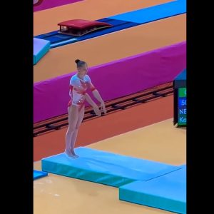 She inhaled, removed her jacket, and walked toward the beam with calm focus. The crowd quieted. Her opening pose drew applause. Her leaps and turns were precise, fluid, controlled. And then came the acrobatic series—the riskiest part of her routine.