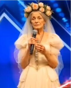 That night, in a wedding dress on a talent-show stage, she transformed personal pain into universal beauty. She proved that sometimes, the most unexpected costumes carry the deepest truths—and that a single voice, brave enough to sing its story, can unite an audience in tears and triumph.