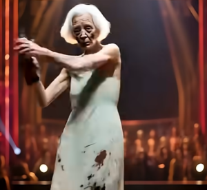 The climax came when she reached out her arms, trembling but steady, as if holding an entire lifetime in her hands. The music swelled, filling every corner of the theater with a raw, aching beauty that made it impossible to look away.