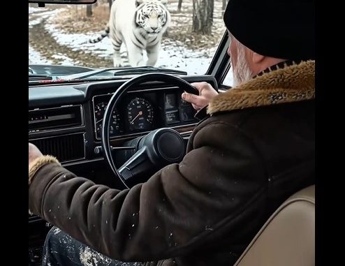 The road was quiet, stretching through a snowy forest where encounters were rare and silence ruled. A man was driving slowly, enjoying the calm, when suddenly he slammed on the brakes.